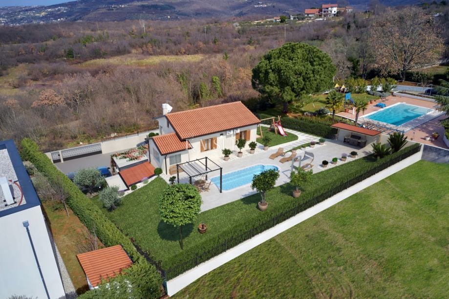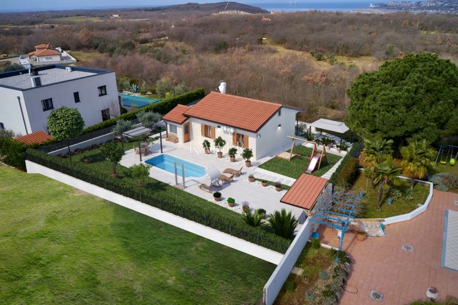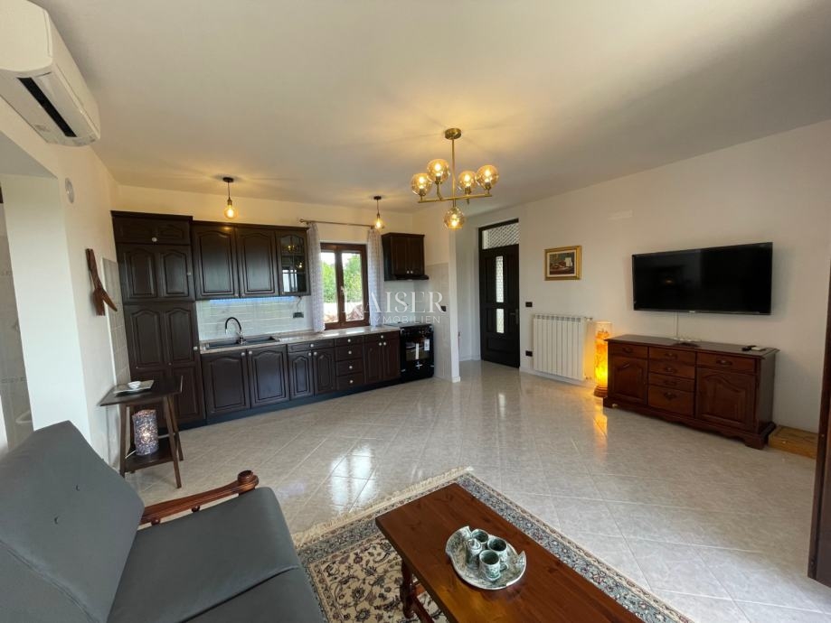Wir bieten ein wunderschönes Einfamilienhaus mit wunderschönem Panoramablick zum Verkauf an. Das Haus liegt auf der Lichtung des schönen Istriens in einer bezaubernden Lage, auf der einen Seite sieht man das Meer und auf der anderen Seite die Alpen. Das Haus ist freistehend und bietet eine perfekte Kombination aus Komfort, Ruhe und Natur. Es liegt in einer ruhigen istrischen Siedlung, nur 6 km von den ersten Stränden entfernt. Dieses Haus ist ideal für ein ruhiges Familienleben und kann aufgrund seiner Lage perfekt als Miethaus in der Touristensaison dienen. Das Haus liegt in der Nähe aller notwendigen Einrichtungen wie: Geschäft, Schule, Apotheke, Restaurants, Pizzeria...alles, was man täglich am meisten braucht, und ist gut an Städte wie Umag, Buje, Novigrad, Portorož und Kopar angebunden und ist nur etwa 10 Minuten vom Zentrum von Umag und Buje entfernt. Das Haus wurde kürzlich renoviert und kombiniert traditionelle und moderne Elemente. Das Innere des Hauses ist mit luxuriösen Möbeln aus dem späten 19. Jahrhundert, neu restaurierten Möbeln aus der viktorianischen Zeit und Originalgemälden akademischer Maler aus Kroatien ausgestattet. Das Haus verfügt über zwei Küchen, elegant eingerichtete Schlafzimmer und geräumige Wohnzimmer, die komplett ausgestattet sind. Rund um das Haus gibt es einen privaten Garten mit neuem Pool und Platz zum Entspannen und Genießen, natürlich mit der Möglichkeit, den Garten nach den Wünschen des Käufers zu dekorieren und anzupassen. Der Energieausweis bestätigt die Bauqualität aus dem Jahr 2000 mit kürzlich erfolgten Renovierungen, die modernen Wohnstandards entsprechen. Das Haus kann auch als ideale Gelegenheit für Investitionen in eine touristische Vermietung mit bestätigtem Potenzial von der Agentur Istria Home dienen. Das Haus steht im aktuellen Zustand zum Preis von 430.000 Euro zum Verkauf, mit der Option auf zusätzliche Begrünung oder den Kauf mit bereits visualisierter Begrünung. Es besteht die Möglichkeit einer weiteren Bebauung auf einem Grundstück von 240 m2.