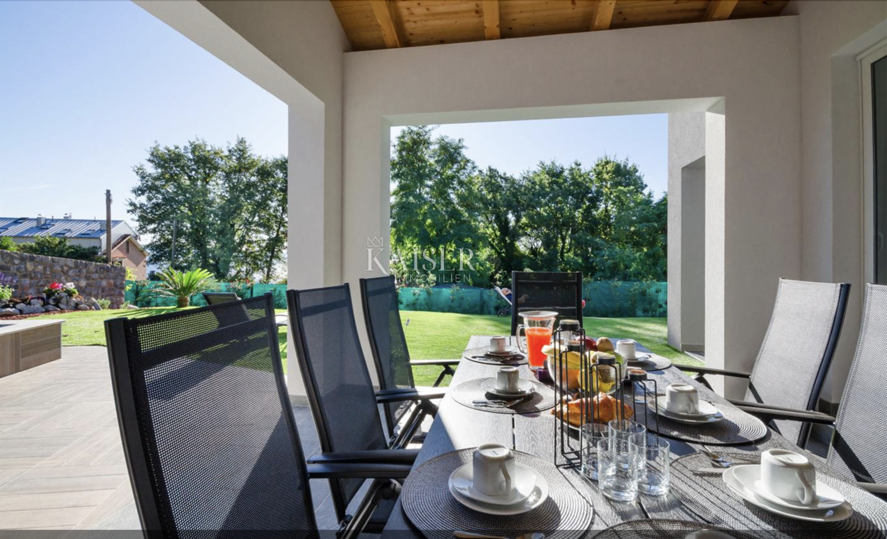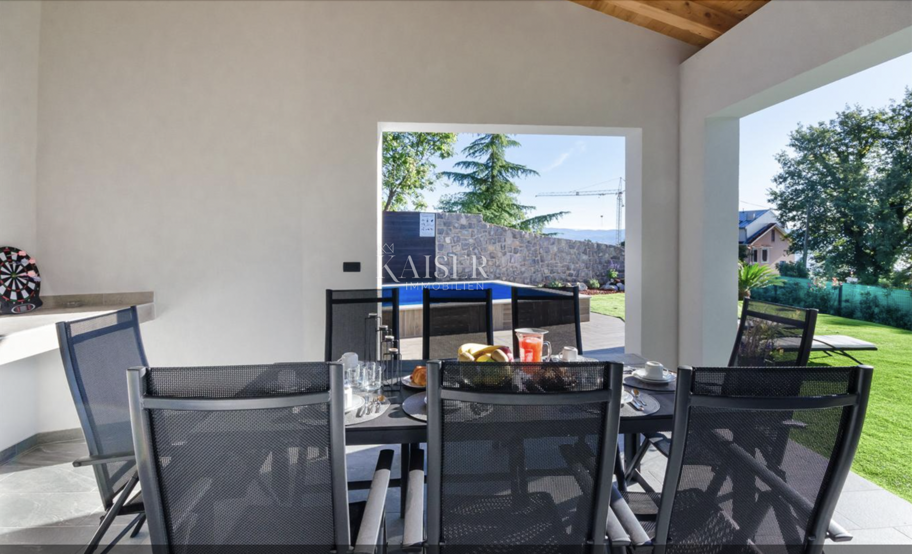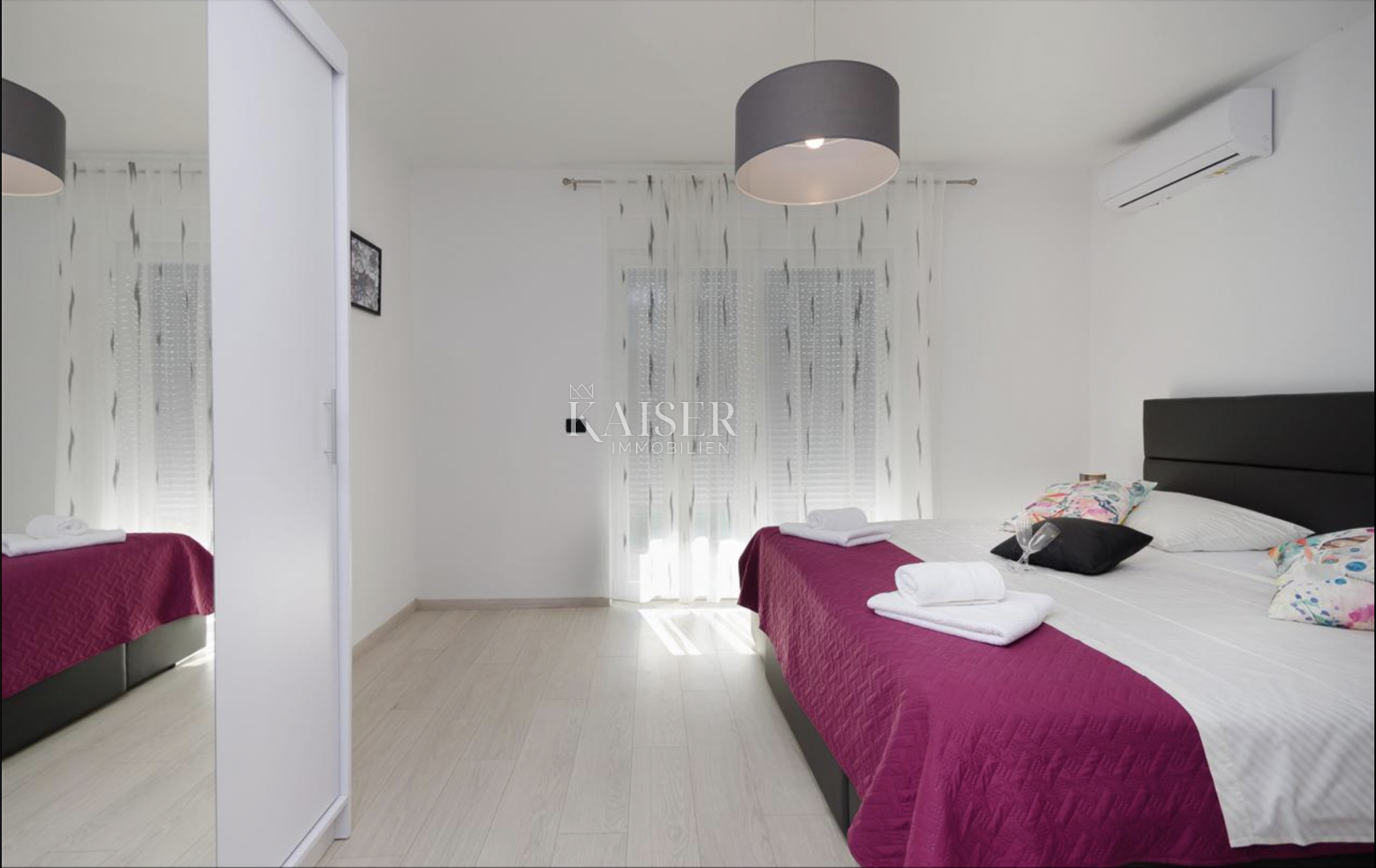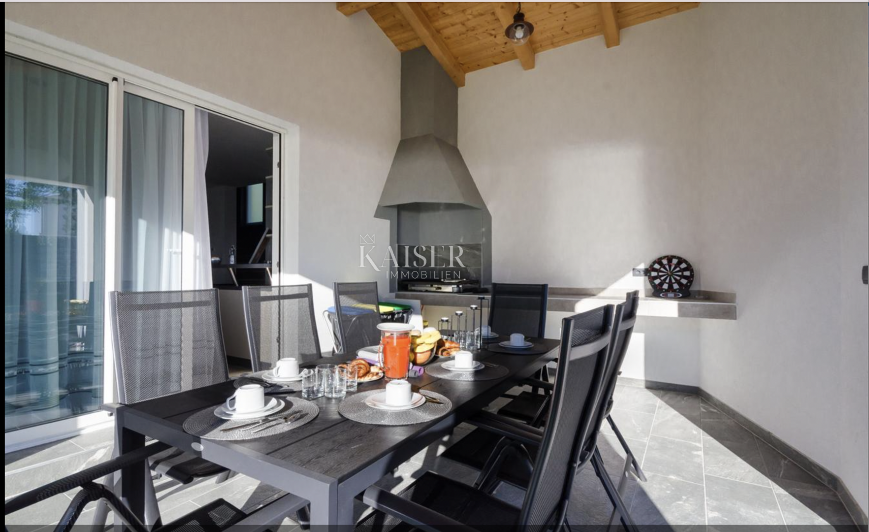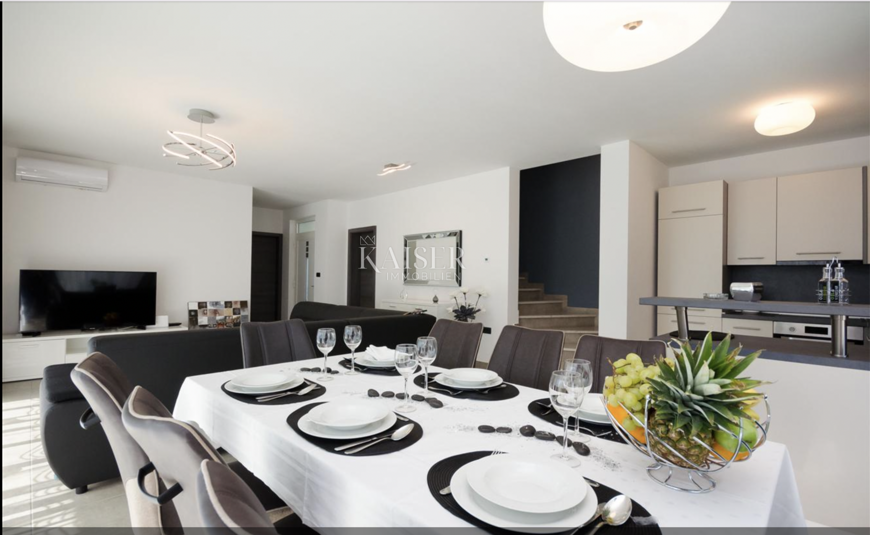Wir präsentiert Ihnen ein freistehendes Haus mit Swimmingpool in toller Lage, ganz in der Nähe von Lungomare und dem Strand Ičići selbst, befindet sich dieses schöne Haus mit Meerblick. Das Haus hat eine Wohnfläche von 180 m2, erstreckt sich über einen wunderschön angelegten Garten von 630 m2 und besteht aus einem Erdgeschoss und einem ersten Stock. Es ist wunderschön und modern eingerichtet und besteht aus einer geräumigen Küche mit Esszimmer, einem Wohnzimmer mit Zugang zu einer geräumigen Terrasse mit Swimmingpool, einem Grill zum Genießen der Sommertage, einem Schlafzimmer, einem Abstellraum und einem Gästeraum Toilette. Im ersten Stock befinden sich drei Schlafzimmer, jedes mit eigenem Bad. Bei der Dekoration wurde viel Wert auf die Details gelegt, es wurden hochwertige Materialien verwendet. Die Möbel sind Designermöbel und alles ist maßgefertigt. Die Unterkunft liegt sieben Gehminuten vom Strand oder zwei Autominuten entfernt. Das Zentrum von Opatija erreichen Sie innerhalb von zehn Autominuten. Eine ideale Immobilie für ein ruhiges Familienleben, die auf ihren neuen stolzen Besitzer wartet.