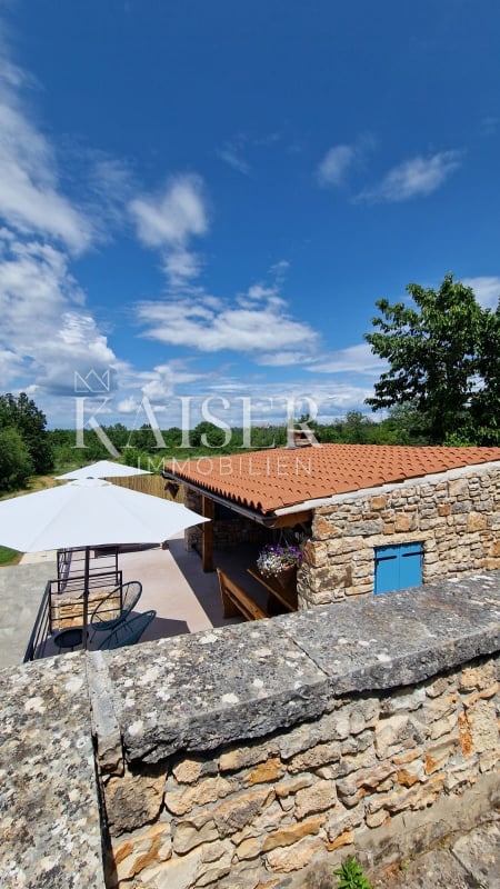Wir präsentieren ein wunderschönes istrisches autochthones Steinhaus am Rande eines kleinen istrischen Dorfes mit einem Grundstück in der Natur. Das Haus erstreckt sich über ein Grundstück von 7000 m2. Das Haus wurde im traditionellen istrischen Stil mit modernen Elementen erbaut. Es liegt auf einem eigenen, einzigartigen Grundstück, das mit einem großen Grundstück in Form eines Waldes, einer Promenade, einer Wiese, hügeligem und flachem Gelände verbunden ist. Somit bietet das Grundstück vielfältige Nutzungsmöglichkeiten für sportliche Zwecke, den landwirtschaftlichen Anbau oder einfach nur den Genuss purer, unberührter Natur. Es wird völlige Privatsphäre zum Genießen geboten. Das Haus besteht aus einem Erdgeschoss und einem Obergeschoss, im Erdgeschoss befinden sich eine Küche, ein Esszimmer und ein Wohnzimmer, während sich im Obergeschoss 3 Schlafzimmer und ein großes Badezimmer befinden. Dekoriert mit einer Kombination aus Moderne und Tradition. Das Äußere des Hauses ist mit großen Steinterrassen geschmückt, und an mehr als einer Seite des Hauses ist eine weitere überdachte Terrasse mit Außenküche und Grill angeschlossen. Notwendige Annehmlichkeiten wie Geschäfte, Post, Schule, Kindergarten, Apotheke, Pizzeria, Restaurant, Kaffeebar sind nur ca. 2 km vom Grundstück entfernt. In diesem Verkaufsfall gibt es zwei Verkaufsmöglichkeiten. Nämlich, dass die Immobilie aus 12 Grundstücken und einem Haus besteht, der Verkäufer bietet für 730.000,00 Euro ein Haus mit landwirtschaftlichen Grundstücken, die ein Grundstück von 7000 m2 ergeben, oder das ganze Grundstück an, und das war’s. Ein Haus mit einem Grundstück von ca. 9000 m2, wovon ein Teil bebaut ist, und zwei weitere legalisierte Gebäude, die gebaut werden können, würde sich auf insgesamt 940.000,00 Euro belaufen. Neben dem Haus gibt es auf dem Grundstück noch zwei weitere legalisierte Gebäude, nämlich ein weiteres bewohnbares Haus mit allen Elementen, das jedoch einer Anpassung bedarf, und ein weiteres abgerissenes Gebäude, das jedoch zum Bau legalisiert ist. Daher bietet die Immobilie verschiedene Wohnmöglichkeiten.