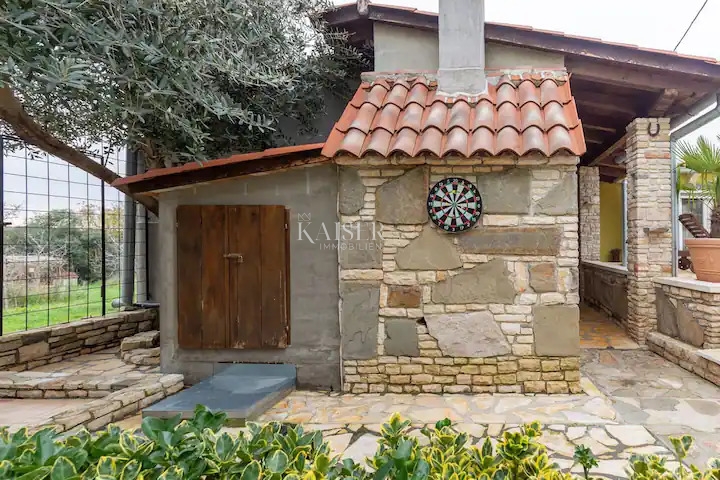 Wir präsentieren wunderschöne Häuser mit Schwimmbad in toller Lage in der Nähe von Fažana. Zum Verkauf stehen zwei Häuser mit Swimmingpool, istrischem Design und authentischem Erscheinungsbild in begehrter Lage. Die Häuser bilden eine Einheit und werden als solche verkauft. Sie befinden sich in ruhiger Lage am Ende einer Sackgasse, wodurch Ihre Privatsphäre zusätzlich gewährleistet ist. Die Häuser haben eine Gesamtwohnfläche von 164 m2 mit einer angelegten Gartenfläche von ca. 400 m2. Das erste Haus (90 m2) besteht aus einem Flur, drei Schlafzimmern, einem Badezimmer und einer Küche mit Esszimmer und einem Wohnzimmer mit Zugang zu einer überdachten Terrasse. Es bietet einen schönen Kamin und eine Zentralheizung als Heizquelle im Winter sowie Klimaanlagen. Auch sämtliche Nebenkosten und Beiträge für die Bodenerhöhung wurden für das Haus bezahlt. Das zweite Haus (50 m2) besteht aus einer Küche mit Esszimmer und Wohnzimmer, einem Badezimmer und zwei Schlafzimmern. Es bietet eine großzügige überdachte Terrasse zum geselligen Beisammensein. Der Pool im Garten ist 31 m2 groß und liegt zwischen zwei Gebäuden. Die gesamte Poolausrüstung befindet sich in einem kleinen Abstellraum. Der Pool hat eine luxuriöse Quadratmeterzahl (30 m2) und ist Salzwasser. Der sorgfältig genutzte Hof verbindet beide Häuser komfortabel, er bietet einen Abstellraum, eine kleine Werkstatt, die in eine Sauna umgewandelt werden soll, eine Außendusche und einen Kamin. Immobilien werden erfolgreich vermietet und sechs Monate im Jahr bewohnt, was sie rentabel macht und die Möglichkeit einer Investition bietet, aber auch die Möglichkeit, ein Haus zu mieten und gleichzeitig im anderen zu wohnen. Fažana ist nur zwei Kilometer entfernt, während das Zentrum von Pula eine zehnminütige Autofahrt entfernt ist. Der Standort bietet eine Handvoll Inhalte und Aktivitäten, dank der hervorragenden Konnektivität haben Sie zahlreiche Attraktionen des Alltags immer zur Hand. Bei der touristischen Vermietung erzielt die Immobilie mit einer Belegung von fast 6 Monaten pro Jahr hervorragende Ergebnisse