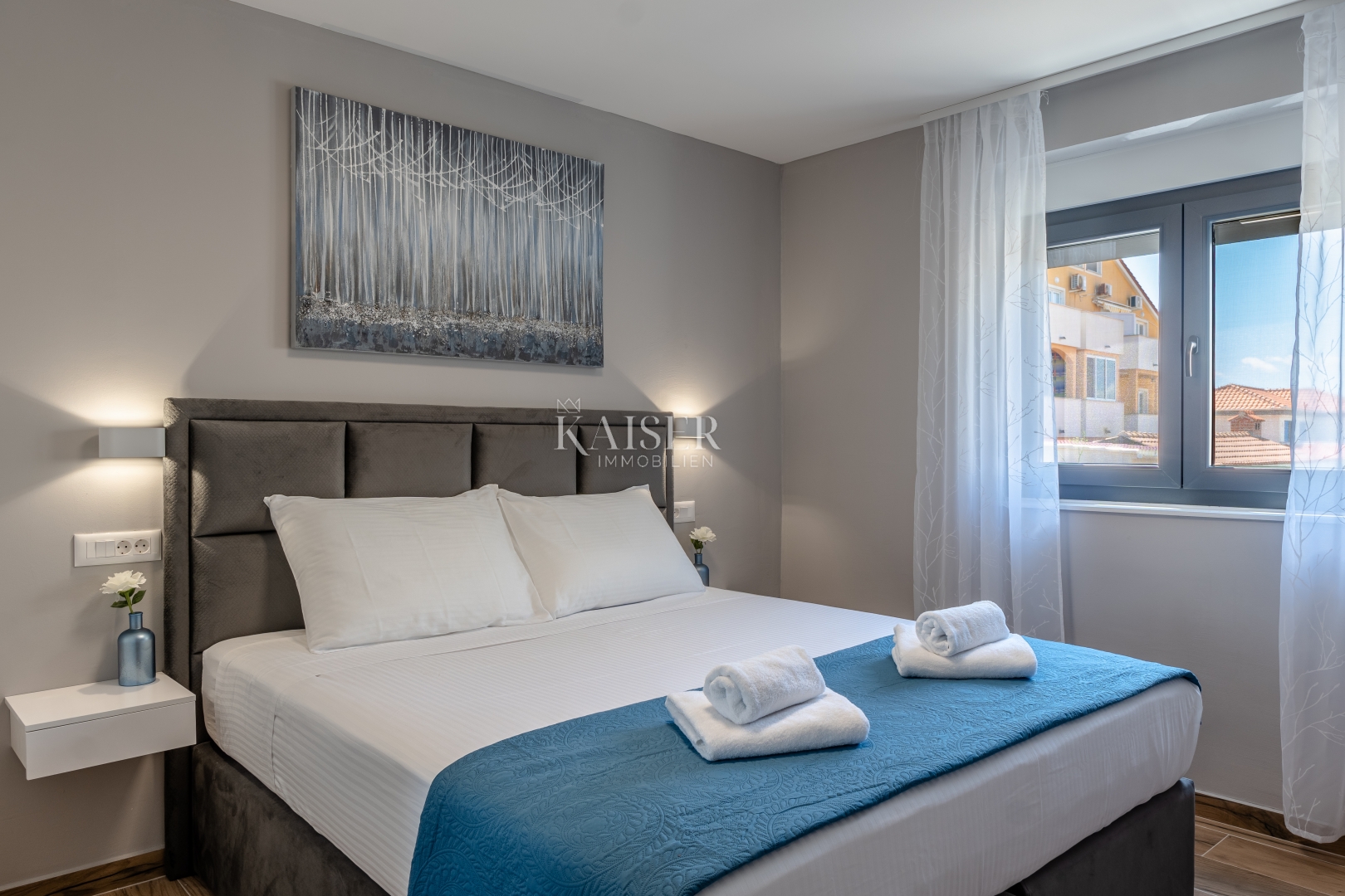 Wir sind stolz, ein wunderschönes modernes Haus mit herrlichem Meerblick in einer ruhigen Straße präsentieren zu können. Dieses beeindruckende Anwesen bietet alles, was Sie für ein komfortables und luxuriöses Leben benötigen. Genießen Sie die Privatsphäre des Pools, den Komfort der Wärmepumpe und der klimatisierten Räume sowie den wunderschön angelegten Garten. Das Haus umfasst 235 m2 Wohnfläche und liegt auf einem großzügigen Garten von 350 m2, der ausreichend Platz zum Entspannen und Genießen bietet. Es verfügt über 6 geräumige Schlafzimmer, 4 moderne Badezimmer und ausreichend Parkplätze für 5 Fahrzeuge. Hauptmerkmale: Meerblick, Swimmingpool, Wärmepumpe, Klimaanlage, gepflegter Garten, 6 Schlafzimmer, 4 Badezimmer, 5 Parkplätze, moderne Möbel, separate Eingänge für Erdgeschoss und erste Etage, Möglichkeit der Touristenvermietung.