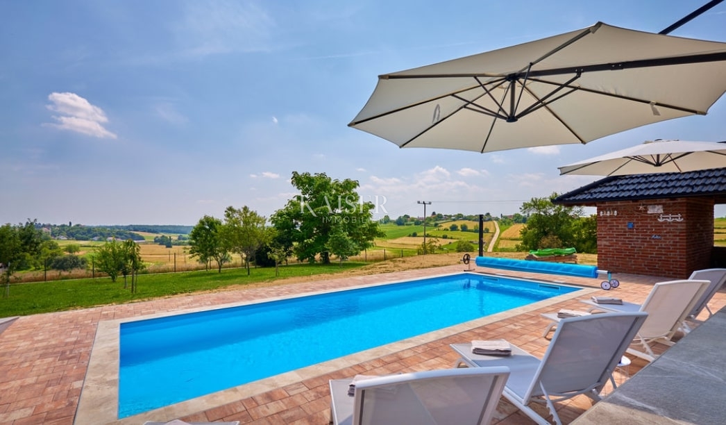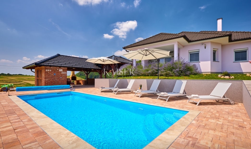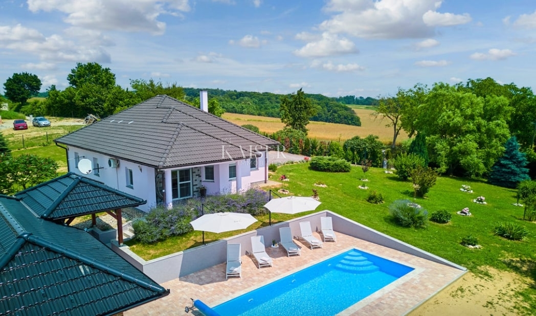 Wir präsentieren ein wunderschönes Haus mit Swimmingpool, Wohnfläche von 160m2, umgeben von herrlicher Natur und Grün. Dieses geräumige Haus besteht aus drei Schlafzimmern, einem Wohnzimmer, einer Küche, einem Esszimmer und zwei Badezimmern und bietet ausreichend Platz für ein komfortables Familienleben. Im angelegten Garten gibt es einen Swimmingpool (32 m2) mit Sonnendeck, fünf Parkplätze und eine Garage, die auch für Fahrzeuge zur Verfügung steht. An sonnigen Tagen können Sie es auf der Terrasse oder im liebevoll dekorierten Garten genießen. Die Lage dieses Hauses ist ausgezeichnet, da es nur 3 km vom Zentrum von Križevci entfernt liegt, sodass alle lebenswichtigen Einrichtungen wie Geschäfte, Post, Restaurants, Schulen usw. leicht erreichbar sind. Zagreb ist nur 30 Autominuten entfernt, was dieses Haus ideal für diejenigen macht, die ein ruhiges Leben in der Natur mit der Nähe einer Großstadt verbinden möchten. Mit einer hervorragenden Innenausstattung, einem wunderschön angelegten Garten und einer günstigen Lage ist dieses Haus ein wahres Traumhaus. Neben dem Haus befindet sich eine weitere Baustelle von 981 m², auf der sich ein altes Haus mit einem Keller zur Anpassung und einem 30 m tiefen Brunnen befindet.