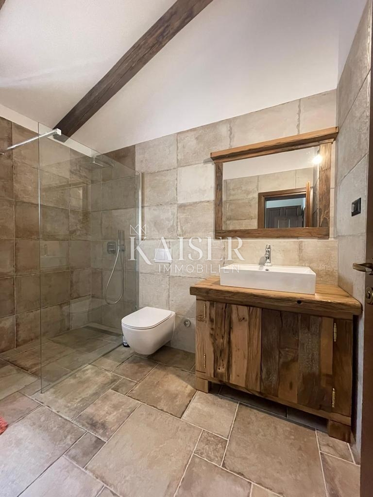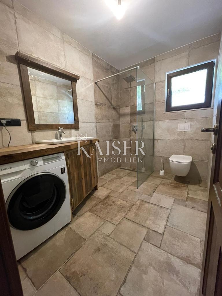 Wir präsentieren ein wunderschönes Steinhaus auf der Insel Krk in der Nähe von Dobrinje. Das Haus hat eine Nettofläche von 150 m2, also 220 m2 Wohnfläche. Das Haus besteht aus einer Taverne, Erdgeschoss und erstem Stock. Im Erdgeschoss gibt es ein Badezimmer, eine Küche mit Esszimmer und ein geräumiges Wohnzimmer mit Zugang zu einer großen überdachten Terrasse und Garten. Im ersten Stock befinden sich 3 Schlafzimmer, zwei davon mit eigenem Bad und Ausgang zur Terrasse mit Whirlpool. Im weitläufigen Garten von 450 m2 gibt es einen Swimmingpool und einen schönen Steingrill. 32,5 m2 großes Schwimmbad mit Mosaik, Wasserfall und Poolheizung. Darüber hinaus wird im Pool Salzwasser verwendet. Das Haus verfügt über eine beeindruckende Ausstattung, darunter Fußbodenheizung im gesamten Haus, hochwertige Salamander-Fenster mit Dreifachverglasung, Mitsubishi-Klimaanlagen, Videoüberwachung zur Sicherheit, massive Eichenmöbel und hochwertige Geräte. Zusätzlich zur Fußbodenheizung wird in den Wintermonaten auch ein Kamin zur Beheizung genutzt, was dem Raum eine besondere Atmosphäre verleiht. Außerdem sind ausreichend Parkplätze für 5 Fahrzeuge vorhanden, davon mehrere überdacht. Die Entfernung zum Meer beträgt 1200 Meter. In der Nähe gibt es ein Geschäft und die Stadt Krk ist nur 20 Autominuten entfernt und bietet zahlreiche Alltags-, Kultur- und Unterhaltungsmöglichkeiten. Insgesamt bietet dieses Haus einen hohen Standard an Komfort und Lebensstil. Die Immobilie ist eine ideale Investition für das Familienleben in einer ruhigen Umgebung, aber auch als Investition, wenn Sie eine touristische Vermietung betreiben möchten.